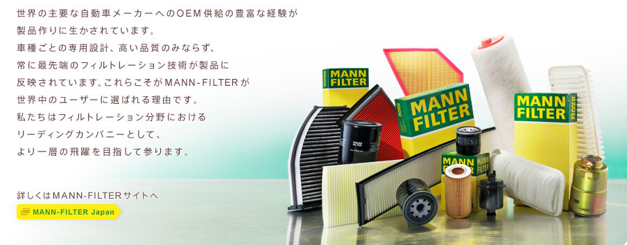 MANN-FILTERはドイツのマン・ウント・フンメル社がアフターマーケット向けに展開するオリジナルブランドです。 世界の主要な自動車メーカーに対するOEM供給の豊富な経験とノウハウが製品に生かされています。